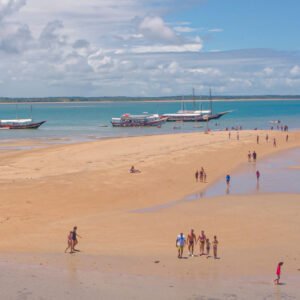 Em seguida, o passeio leva você a um dos lugares mais mágicos do litoral baiano: a Ilha de Coroa Alta. Formada por pó de coral, a ilha oferece uma das praias mais limpas e bonitas de toda a costa. Imagine estar em uma praia que aparece no meio do oceano durante a maré baixa, rodeada por recifes de corais e águas cristalinas. É um cenário digno de cartão postal!